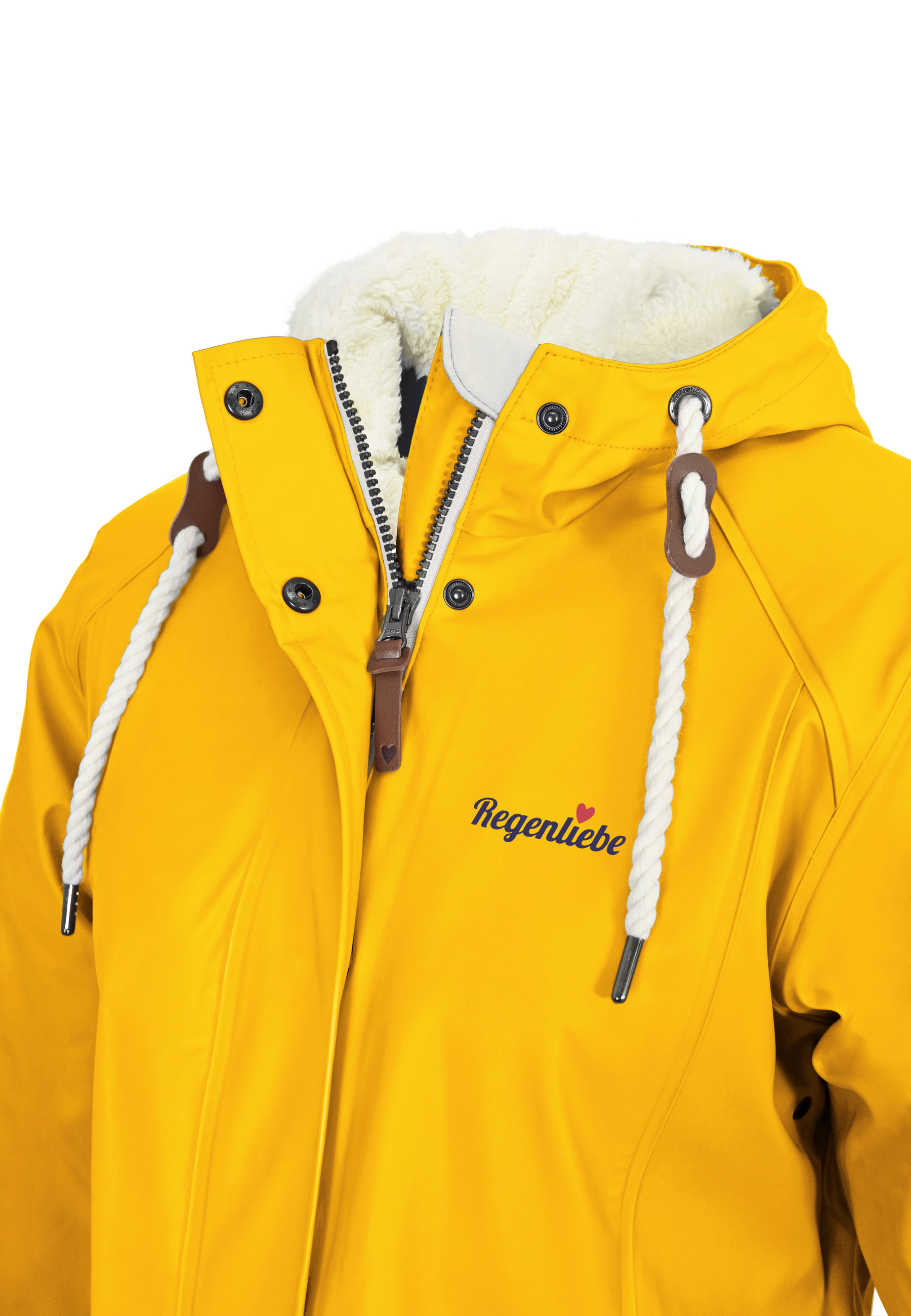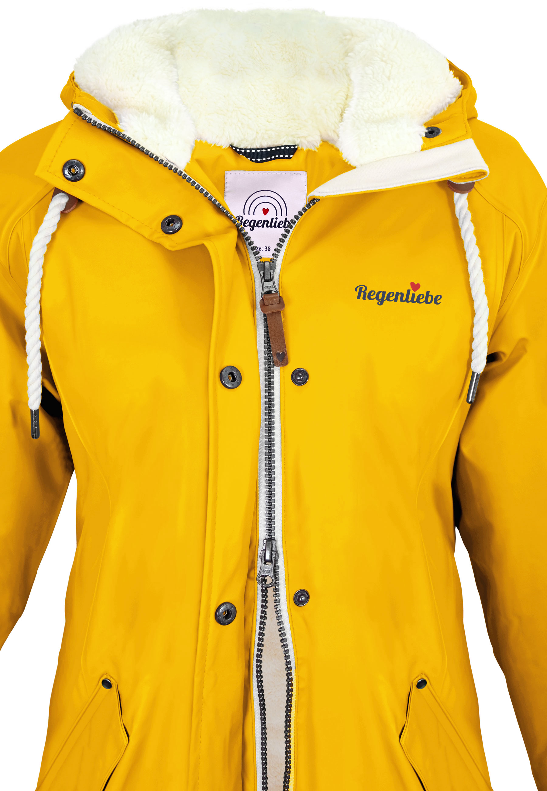 - Regenliebe Damen Regenmantel mit Teddy-Fleece, mehrfach verstellbarer Kapuze und verlängertem Rückenteil