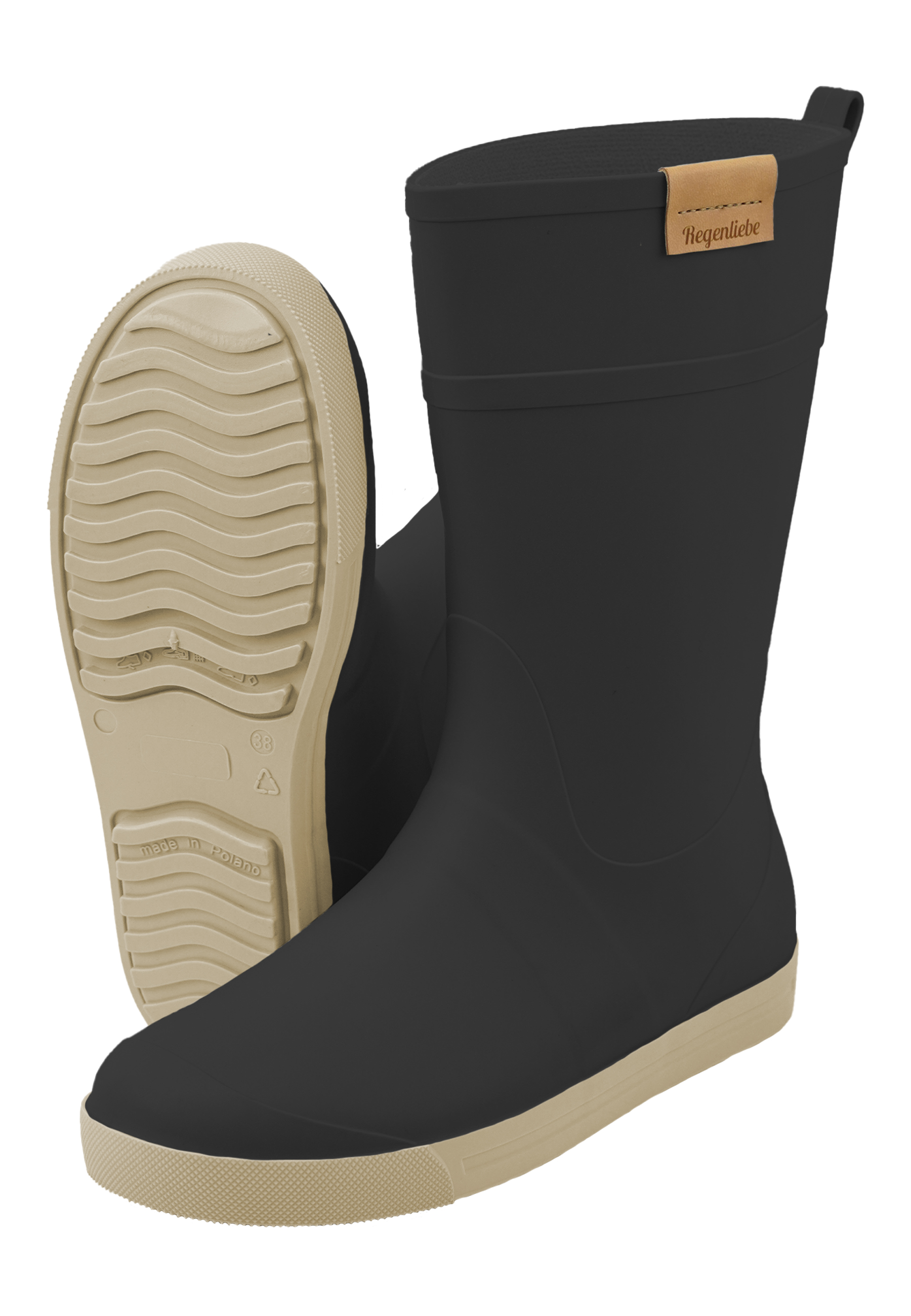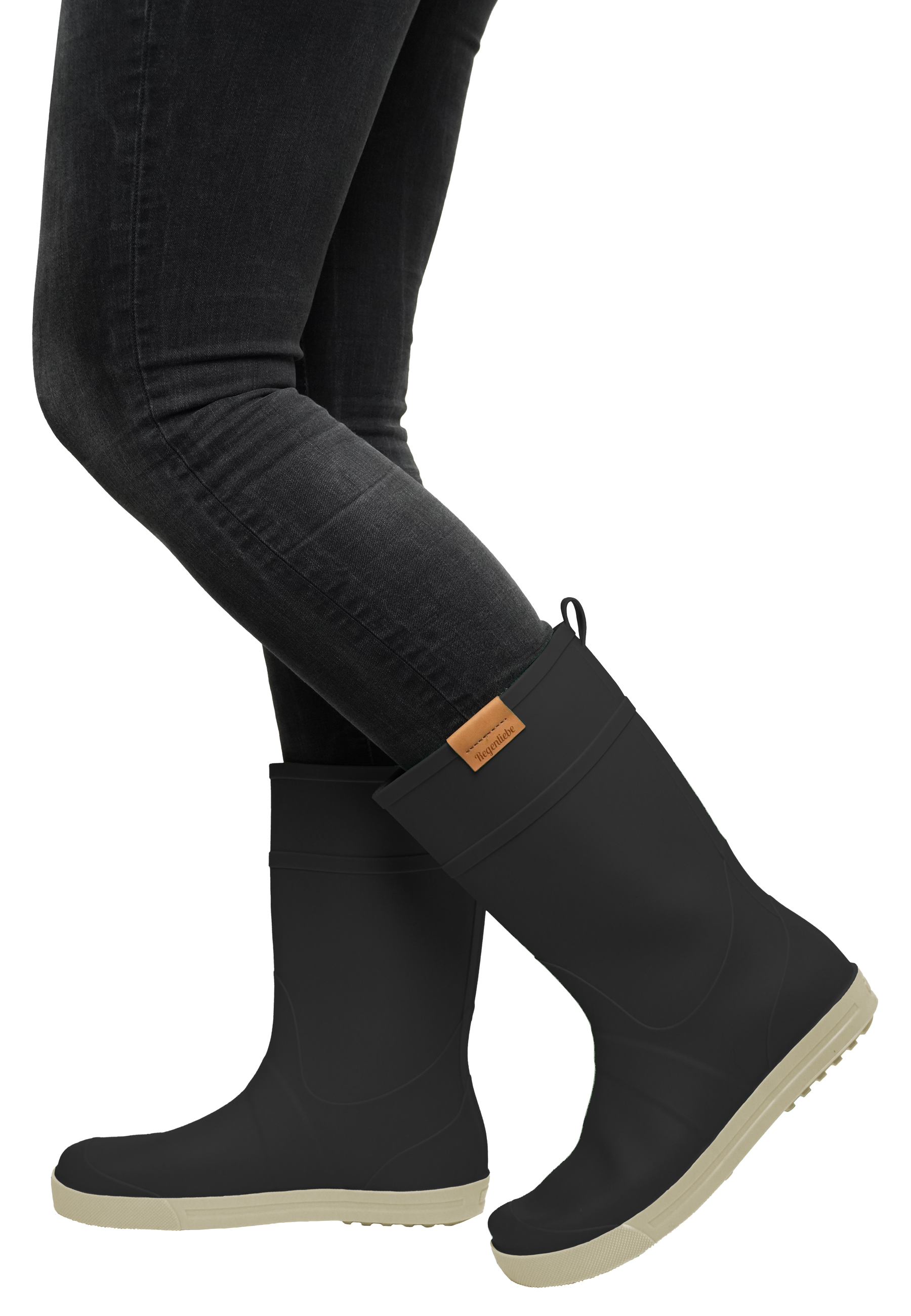 - Regenliebe Damen Gummistiefel Rainy Day schwarz / creme halbhoch mit Sicherheits-Reflektorstreifen an der Ferse