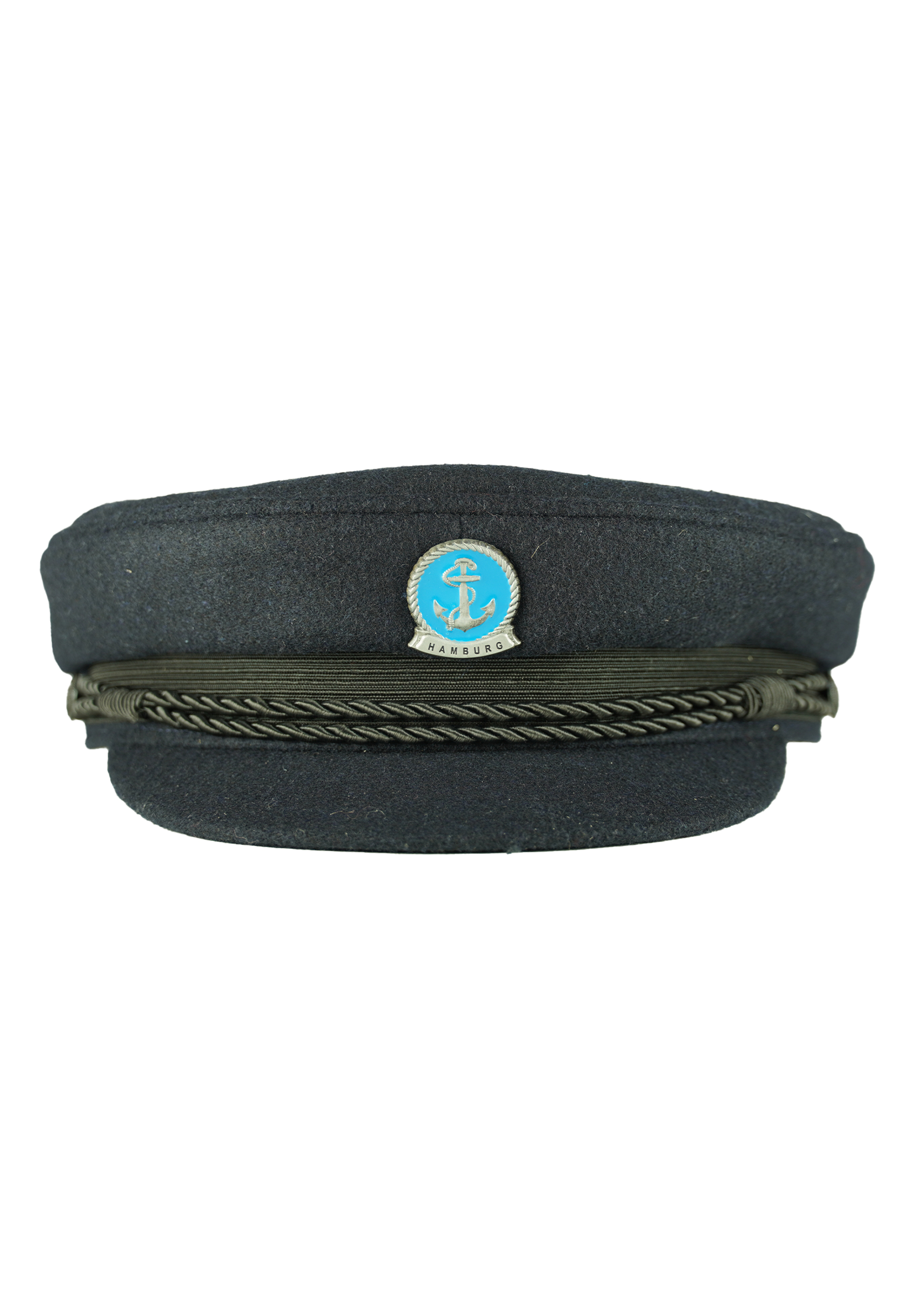 - MADSea klassischer Elbsegler Premium Tuch in dunkelblau mit Pin Hamburg Anker in blau, mit seitlichen Knöpfen mit Ankermotiv