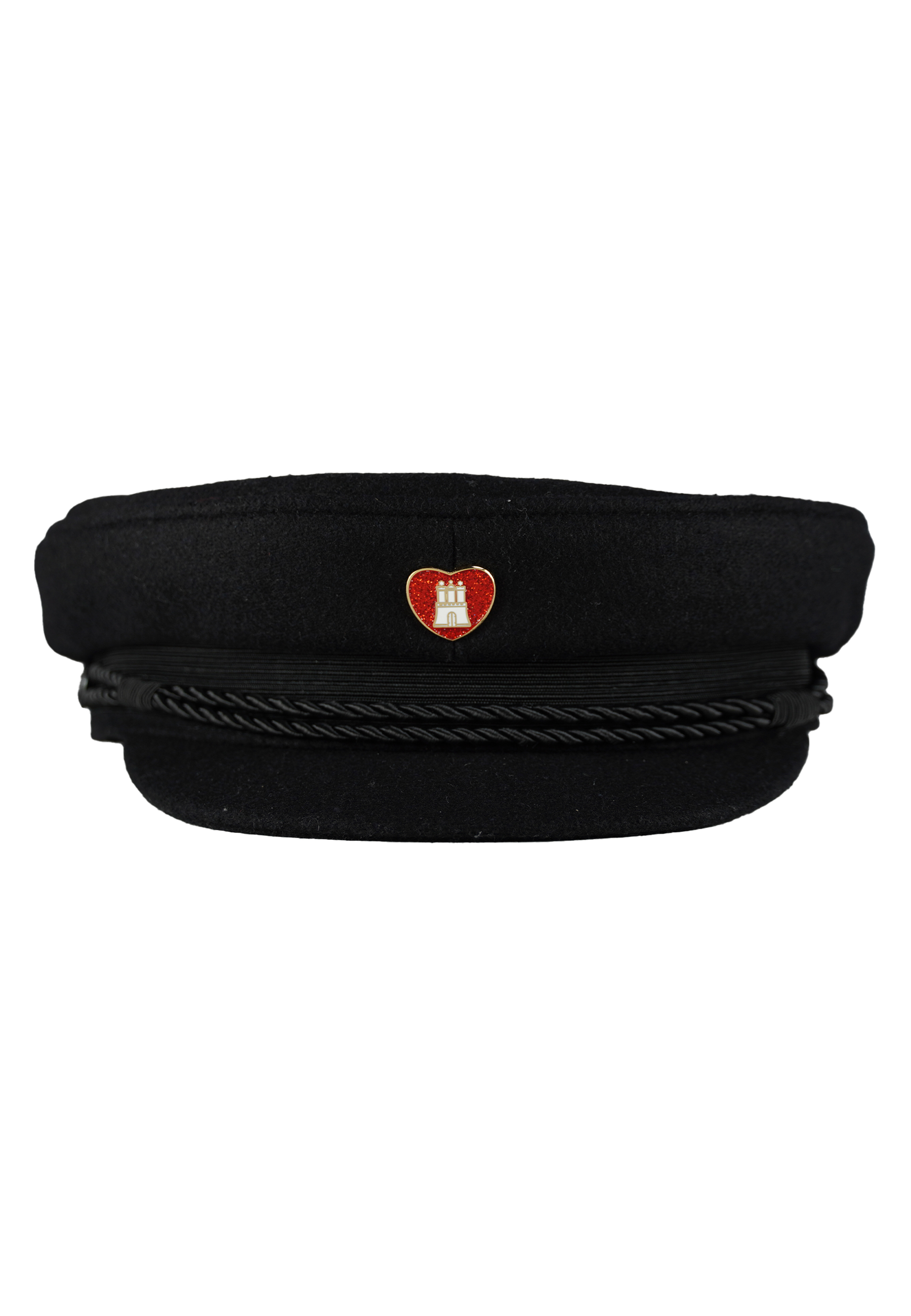 MADSea meets Balke - klassischer Elbsegler aus Schurwolle mit Zierband und Kordel, schützt bei Sonne, Wind und Regen. Zu der Original Mütze von der Qualitätsmarke Balke Fashion gibt es hier den MADSea Pin Herz Wappen Hamburg. Ein tolles Accessoires für Groß und Klein - natürlich können die Pins auch an Jacken, Rucksäcken uvm. angebracht werden.