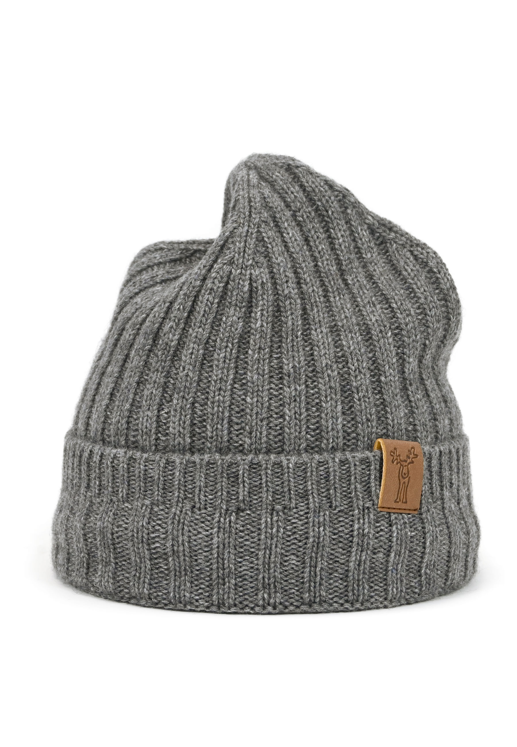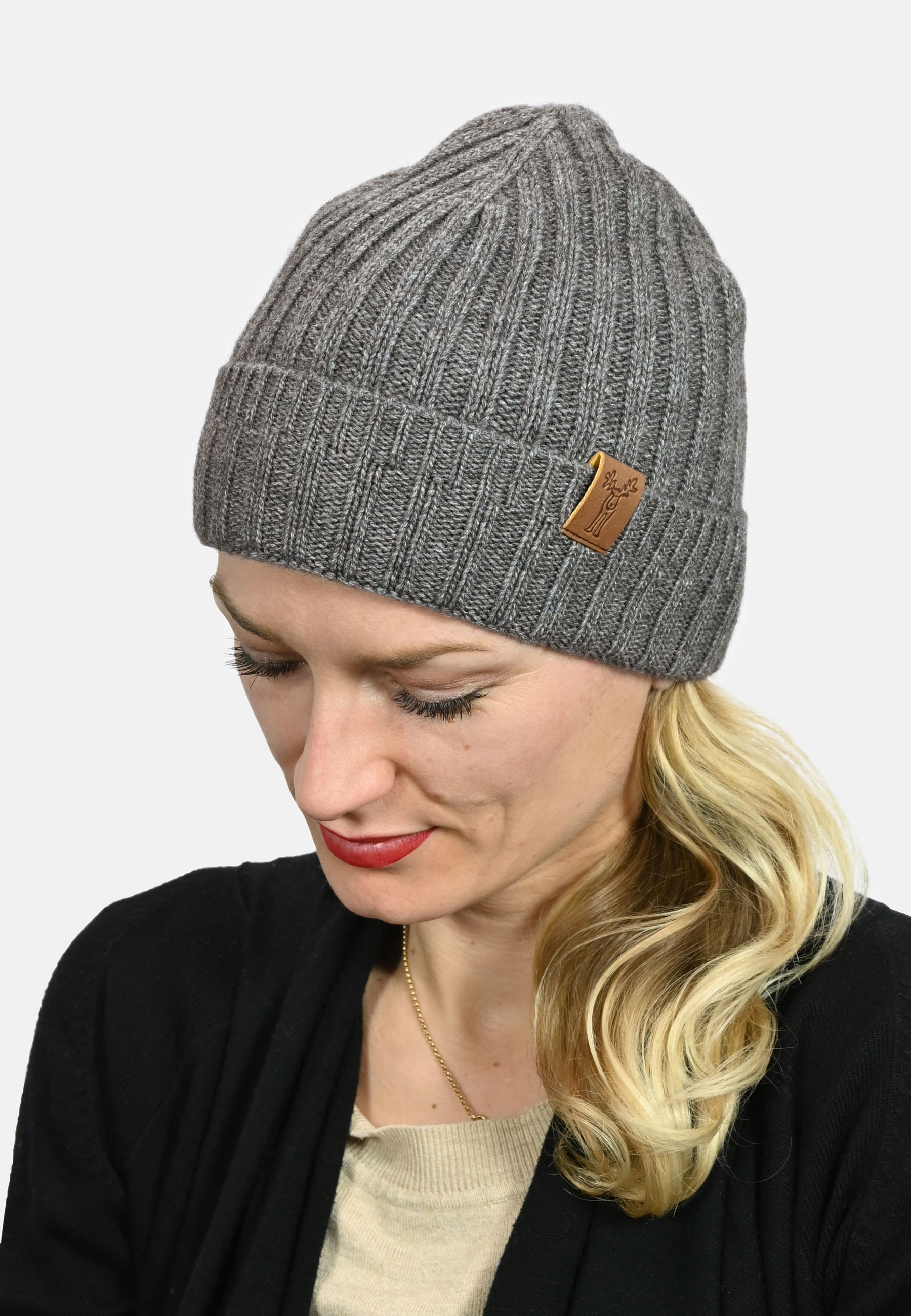 - Elkline Rippstrickmütze mit Kaschmiranteil, Umschlag und Elch-Logo in Lederoptik