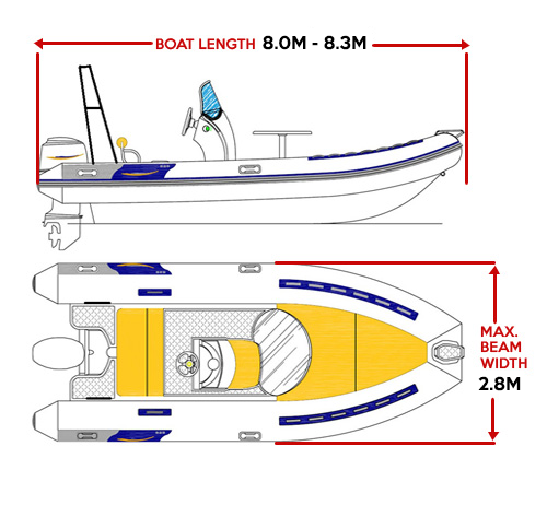 - für Boote zwischen 4,7 m und 9,1 m geeignet