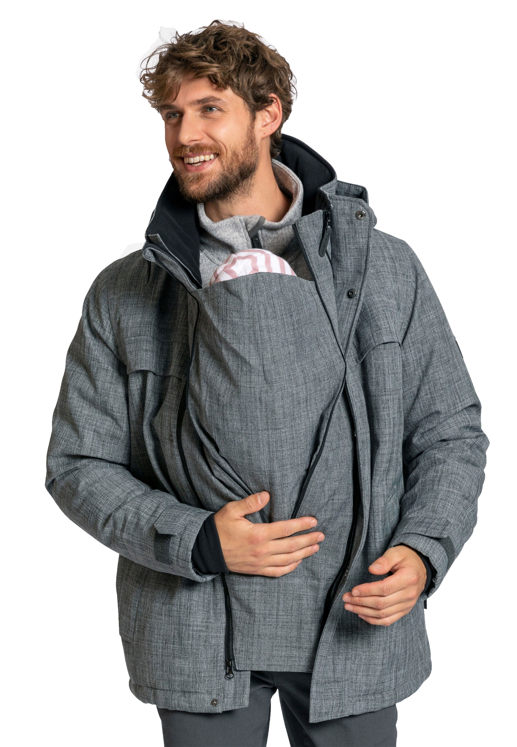 Erst wird der Bauch größer und braucht etwas Platz - danach braucht das kleine Bündel einen warmen und sicheren Platz. Kuschelig unter Mamas Jacke - so fühlt sich jedes Baby wohl. Und braucht Mama einmal Pause, kann Papa seine Jacke in ein Nest umbauen und spazieren gehen.